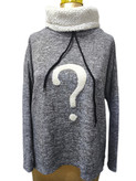 یقه حجیم خزدار، بندهای مشکی تضاددار و علامت سؤال پشمی روی سینه، همه با دوخت تمیز و ظرافت ایتالیایی ترکیب شدهاند تا یک سوشرت متفاوت خلق شود — لباسی که هم در کژوال شهری و هم در استایل نیمهفشن روزانه، کیفیت را فریاد میزند.