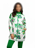 رنگبندی : زمینه سفید با طرح گلدار سبز-بنفش