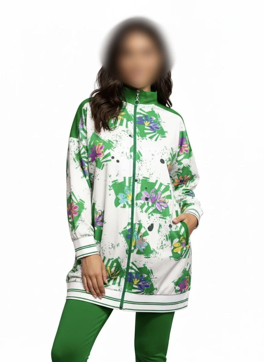 رنگبندی : زمینه سفید با طرح گلدار سبز-بنفش