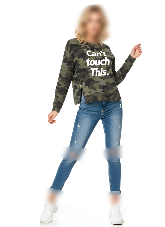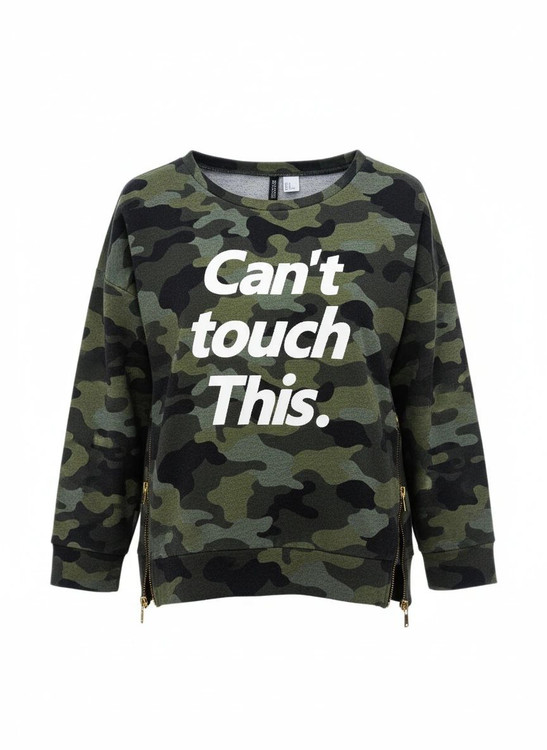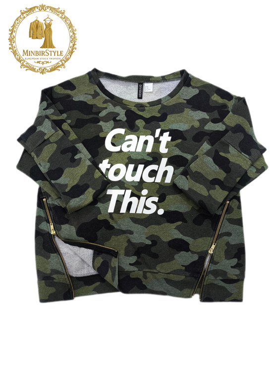 - رنگ و طرح: **ارتشی سبز‑مشکی با چاپ سفید CAN’T TOUCH THIS**